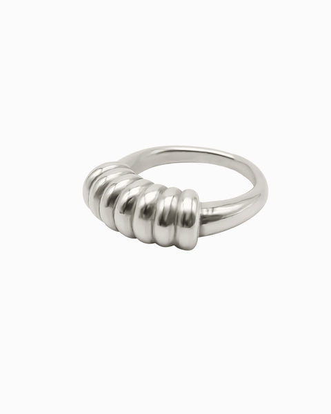 Inspired by the volute elements of the Ionic order and refined for everyday enjoyment, a wide, concave band is decorated by two sets of curves on both sides.